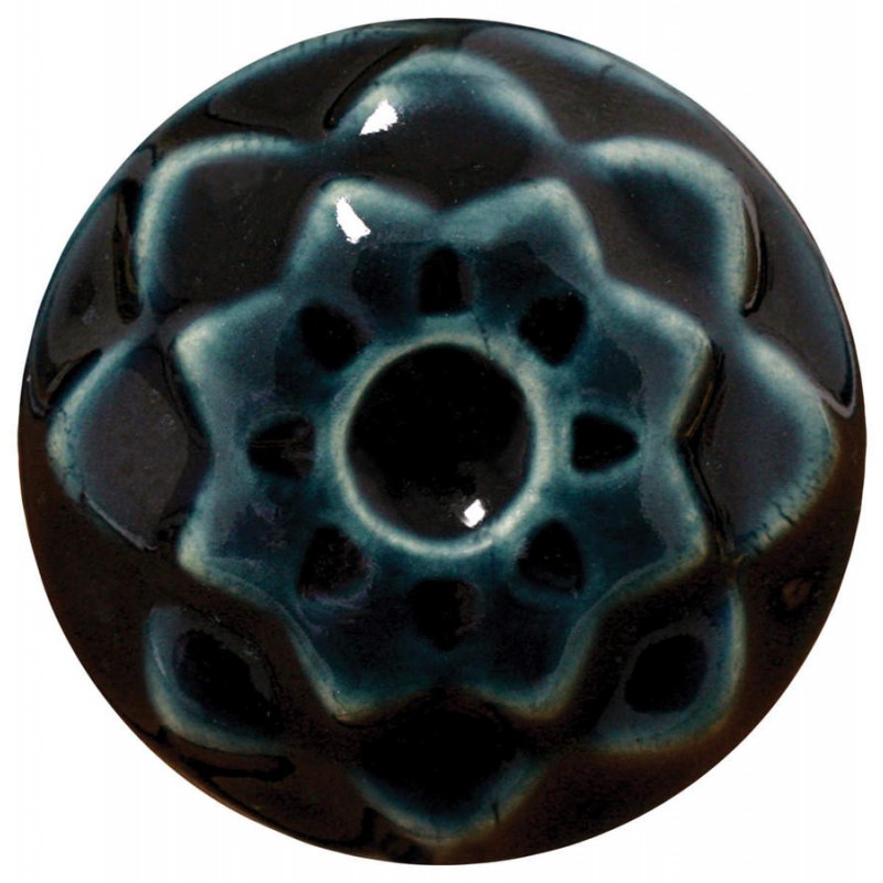 Cet émail céladon est d'un bleu marine profond et brillant qui s'accumule et met en valeur les objets texturés, à l'instar des vernis anciens qu'il est censé imiter.