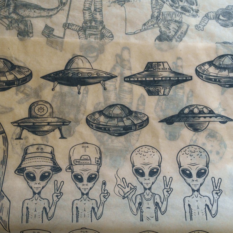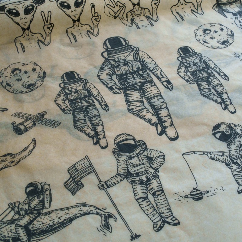 Ce papier transfert Espace avec astronaute et Aliens sera parfait pour ajouter un peu de fantaisie à vos créations.