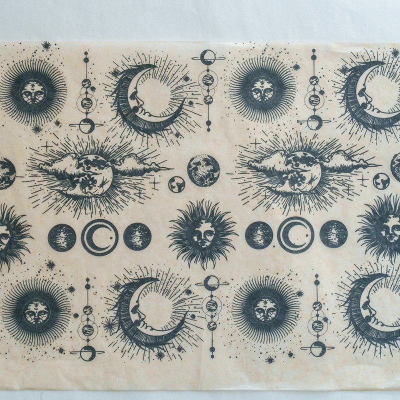 Ce papier transfert Lune et soleil sera parfait pour ajouter un peu de fantaisie à vos créations.
