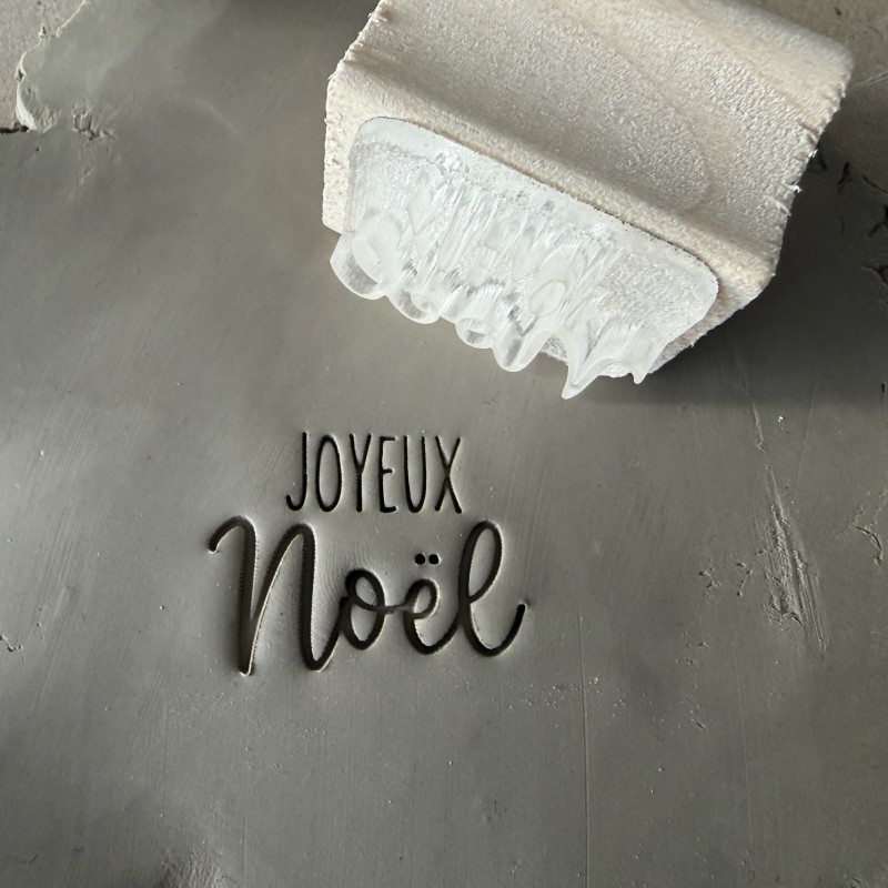 Zoom sur notre tampon message Joyeux Noël pour céramique :