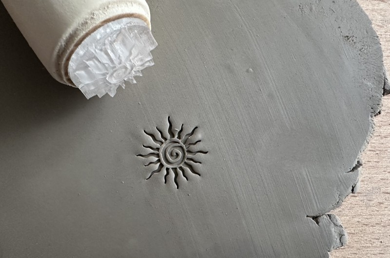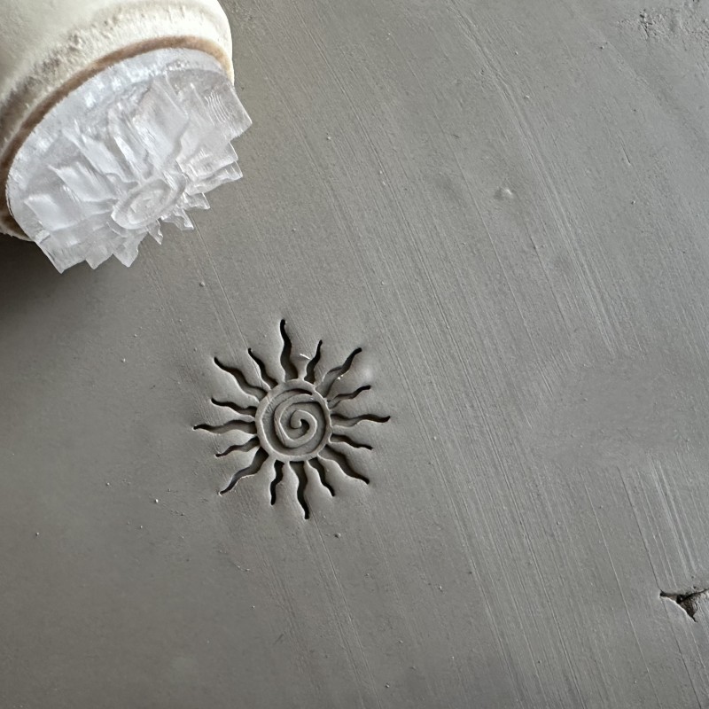 Ce tampon Soleil tribal vous permettra d'ajouter facilement un peu de fantaisie sur vos créations céramique.