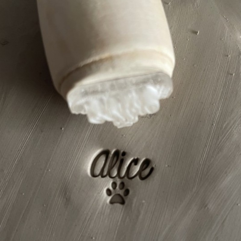 Il est possible de personnaliser ce tampon pour céramique avec le prénom de votre choix.