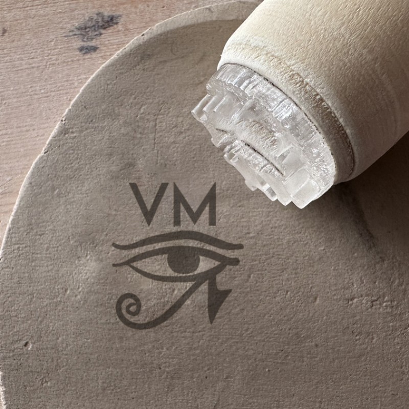 Zoom sur le tampon Poterie Initiales et oeil égyptien :