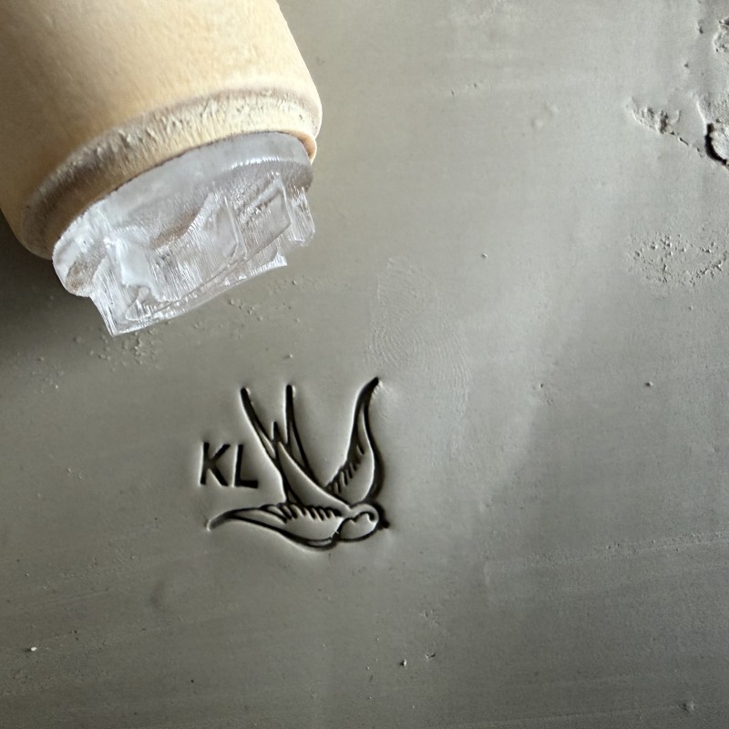 Ajouter un peu de fantaisie sur ces créations céramiques n'aura jamais été aussi facile grâce à notre tampon poterie personnalisable Initiales et hirondelle